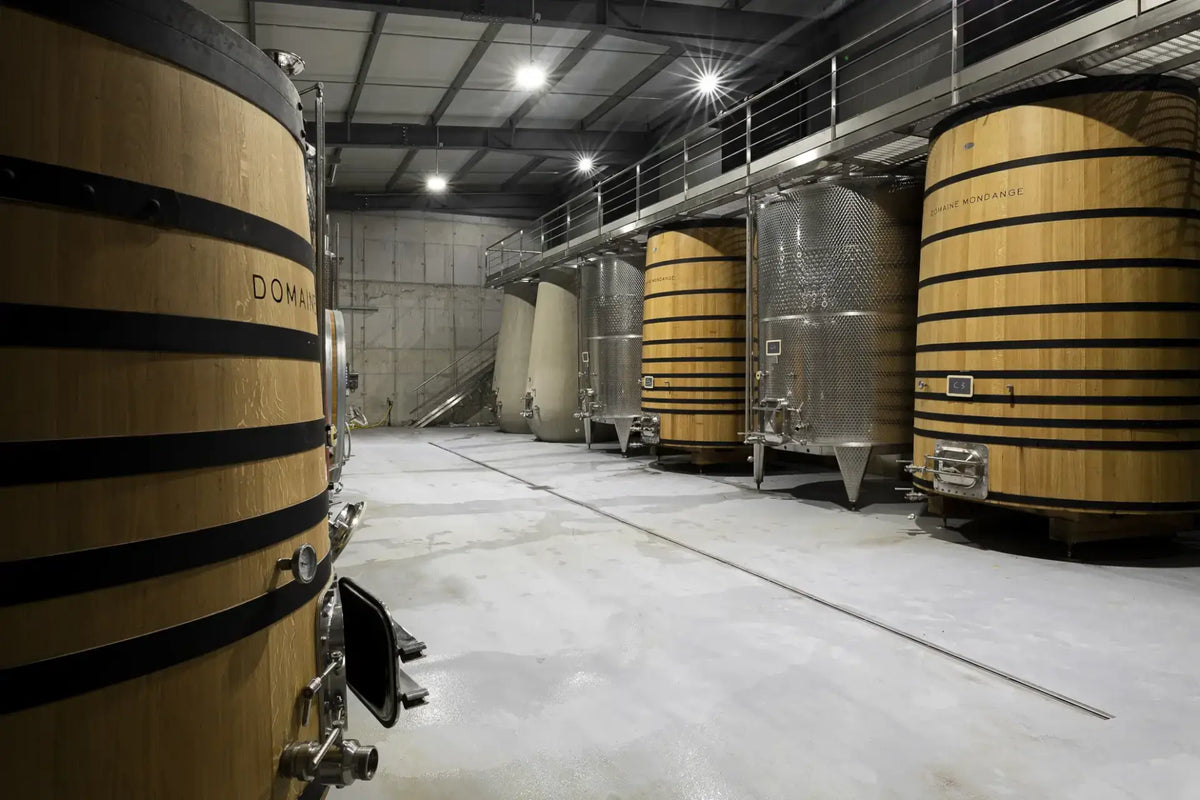 Après de nombreuses années d'apport des raisins en cave coopérative, c'est en 2017 que Laura et Andria créent le Domaine Mondange et quittent alors leurs emplois respectifs pour s'installer en agriculture. Les deux premiers millésimes sont vinifiés dans le sous-sol de la maison familiale. En 2019, le nouveau chai semi-enterré avec une réception gravitaire des raisins voit le jour avec un vaste choix de contenants de vinification et d'élevage (cuve bois, béton tulipe, inox, jarre en grès et barriques). Le choix de vinifier en contenants inox, béton et bois permet de proposer une gamme variée de vins rouges, blancs et rosés. Le domaine est ouvert au public pour la dégustation et la vente des cuvées.